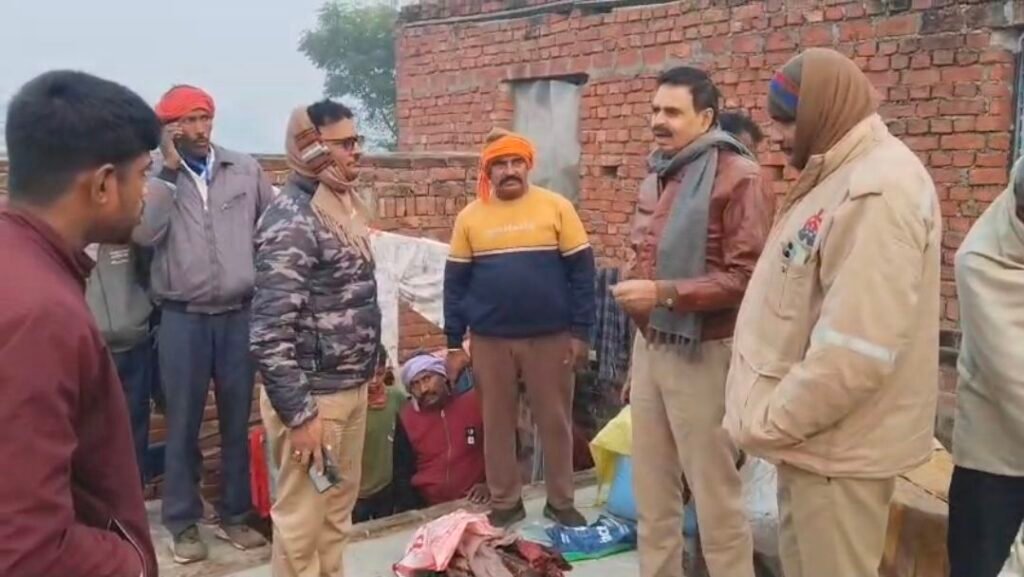 दुधारी गांव में घटना के बाद तप्तीश करती पुलिस—