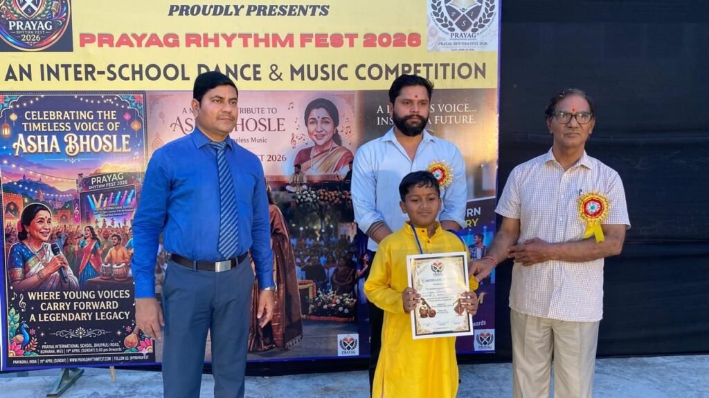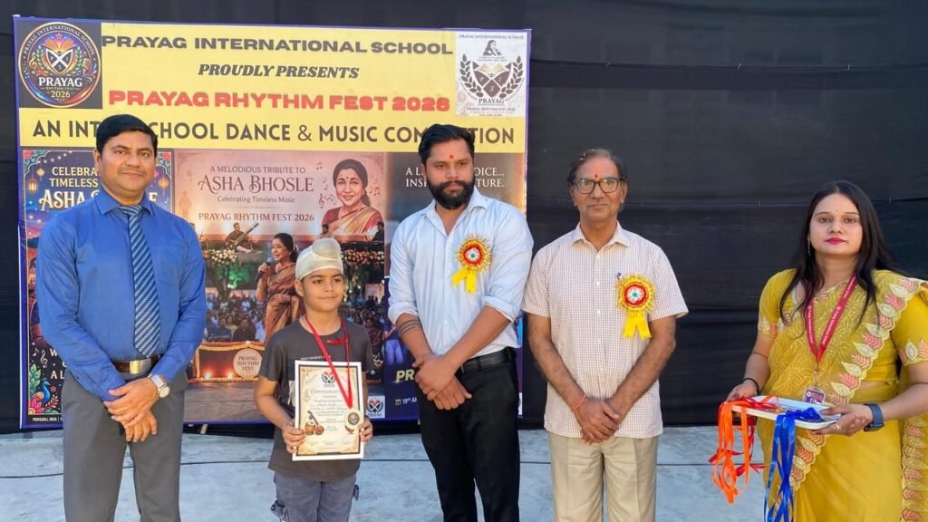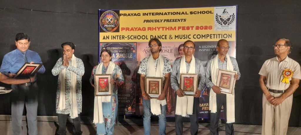 चंदौली। मुगलसराय स्थित प्रयाग इंटरनेशनल स्कूल में 19 अप्रैल 2026 को ‘प्रयाग रिद्म फेस्ट 2026’ का भव्य आयोजन किया गया। अंतर-विद्यालयीय संगीत एवं नृत्य प्रतियोगिता में जनपद के 12 प्रतिष्ठित विद्यालयों के करीब 200 विद्यार्थियों ने उत्साहपूर्वक भाग लेकर अपनी प्रतिभा का शानदार प्रदर्शन किया। प्रतियोगिता को वाद्य, गायन और नृत्य की तीन प्रमुख श्रेणियों में विभाजित किया गया था, जिसे 0–8 वर्ष, 9–13 वर्ष और 14–18 वर्ष के आयु वर्ग में आयोजित किया गया। मंच पर प्रतिभागियों की ऊर्जा, आत्मविश्वास और प्रस्तुति कौशल ने दर्शकों को मंत्रमुग्ध कर दिया। पूरे सभागार में तालियों की गूंज से उत्सव जैसा माहौल बना रहा। कार्यक्रम की खास बात इसकी निष्पक्ष और उच्चस्तरीय निर्णायक प्रक्रिया रही। इस अवसर पर प्रसिद्ध वाद्य विशेषज्ञ समीर कुमार कुंडू निर्णायक के रूप में मौजूद रहे। उन्होंने हवाईयन गिटार और तबला वादन में अपनी विशेषज्ञता के आधार पर प्रतिभागियों का मूल्यांकन किया। आकाशवाणी के ‘युवा वाणी’ कार्यक्रम से जुड़े रहने के साथ-साथ वे विभिन्न प्रतिष्ठित संस्थानों में अपनी प्रस्तुतियां दे चुके हैं और वर्तमान में वाराणसी के एक विद्यालय में संगीत शिक्षक के रूप में कार्यरत हैं। विद्यालय प्रबंधन की ओर से आयोजन की उत्कृष्ट व्यवस्था की गई, जिससे कार्यक्रम सफलतापूर्वक संपन्न हुआ। प्रतियोगिता के दौरान विद्यार्थियों के बीच स्वस्थ प्रतिस्पर्धा के साथ सौहार्दपूर्ण माहौल भी देखने को मिला। अभिभावकों और अतिथियों ने आयोजन की सराहना करते हुए इसे विद्यार्थियों के सर्वांगीण विकास के लिए उपयोगी बताया। ‘प्रयाग रिद्म फेस्ट 2026’ ने न केवल छात्रों को मंच प्रदान किया, बल्कि उनकी रचनात्मकता और आत्मविश्वास को भी नई दिशा दी। यह आयोजन प्रतिभाओं को आगे बढ़ाने की दिशा में एक सराहनीय पहल साबित हुआ।