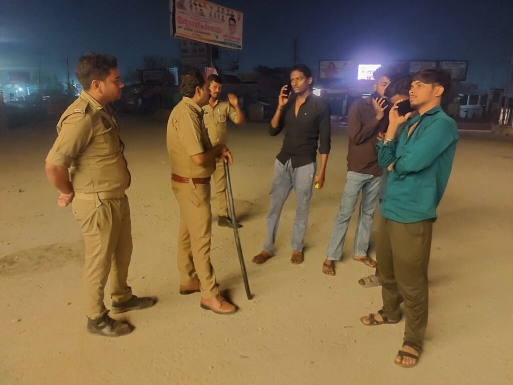 चकिया तिराहे पर रात्रि चेकिंग करती पुलिस टीम —