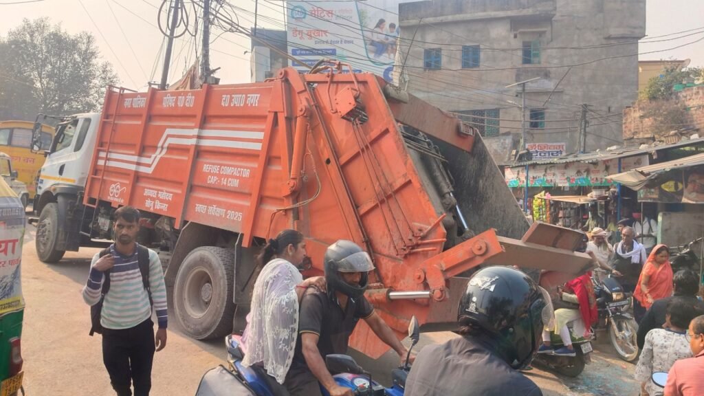 जानकारी के अनुसार गोधना गांव के रहने वाले राम प्यारे यादव अपने परिवार के साथ कार से भोगवार गांव जा रहे थे.भूपौली स्टैंड राम मंदिर के पास सड़क सकरी होने के कारण कार को सड़क किनारे खड़ी कर दिए थे. उधऱ से आ रही नगर पालिका कूड़े की गाड़ी अचानक सड़क किनारे खड़ी कार को टक्कर मार दी. जिससे कार सवार दंपति बाल-बाल बच गए लेकिन उनके कार का अगला और पिछला शीशा टूट गया. चालक को लोगों ने पकड़ कर लिया. स्थानीय लोगों का आरोप है कि चालक शराब के नशे में धुत था. पीड़ित ने डायल 112 पुलिस को सूचना दे दी है.
