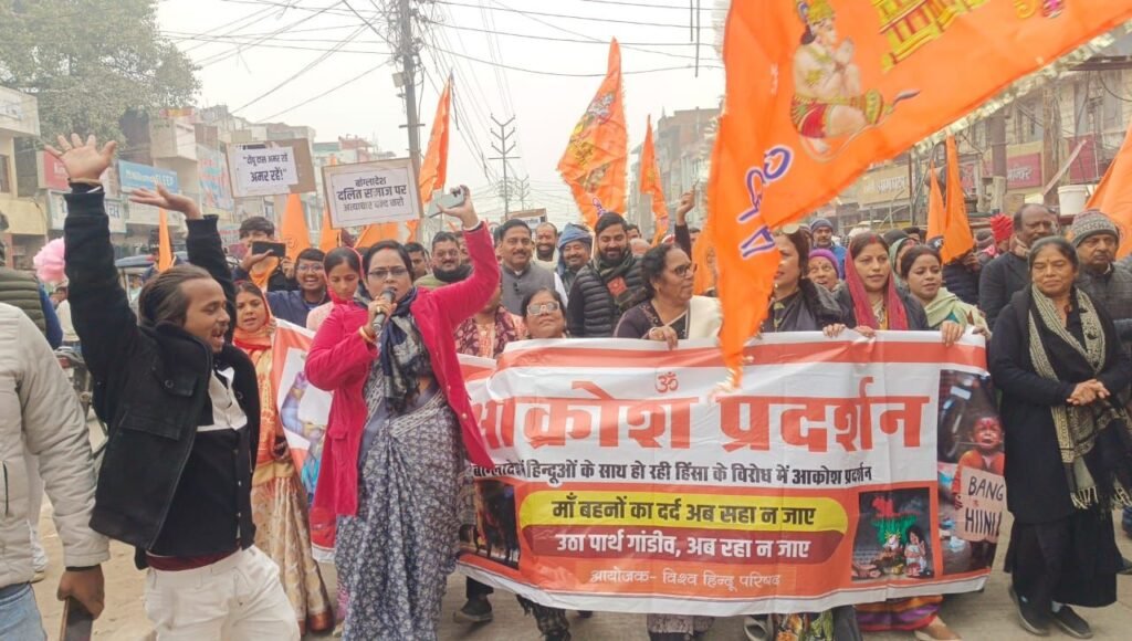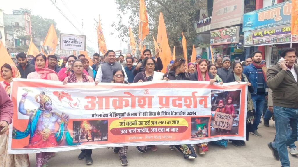 प्रदर्शन में विधायक रमेश जायसवाल, विश्व हिंदू परिषद के जिला मंत्री शशि, जिला उपाध्यक्ष मीणा वैश्य, संपर्क प्रमुख रामावतार तिवारी सहित समस्त विश्व हिंदू परिषद और बजरंग दल के पदाधिकारी मौजूद रहे. यह रैली नगर की कैलाशपुरी शिव मंदिर परिसर से शुरू होकर जीटी रोड स्थित काली मंदिर पर समाप्त हुई. प्रदर्शनकारियों ने बांग्लादेश की अंतरिम सरकार के खिलाफ कड़ा विरोध व्यक्त किया और सनातन धर्म व हिंदू एकता के लिए लोगों को प्रेरित किया.