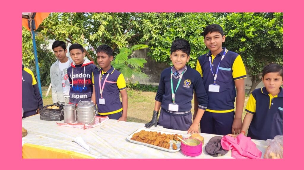 विद्यालय परिसर मेंपकवानों के स्टॉल लगाए विद्यार्थी